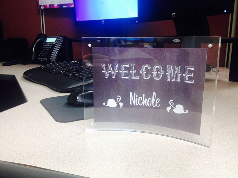 Sexy, SLEEK, Unique…is some of the feedback we get from this smooth concave shaped counter sign. Manufactured using scratch proof plexi glass and using our high definition photo paper, the Kurve offers a classy upgrade to the standard counter card. Available with a black back as well as clear to give you a little more design flexibility.