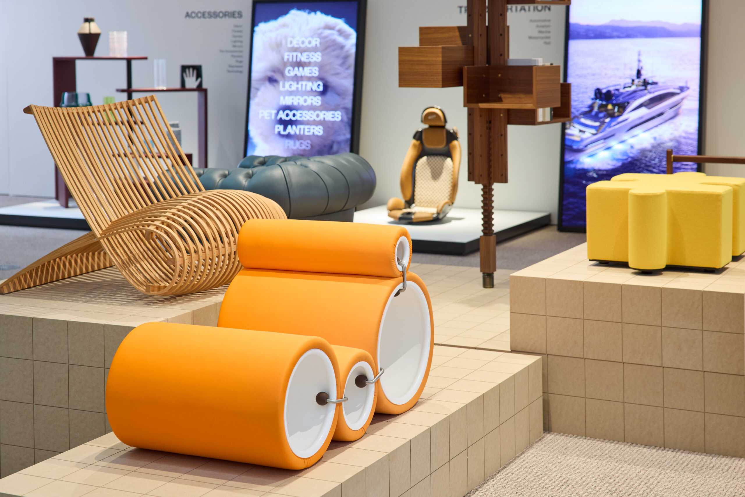 The Haworth Brand Gallery is divided into five areas that showcase the company’s design eras. Your journey through the gallery begins with the Haworth Group, a collection of globally recognized brands working across industries such as commercial, residential, cultural, hospitality, transportation and accessories. Whether you’re furnishing corporate offices, luxury resorts or even Ferrari interiors, the Haworth Group shows how interior design styles adapt across every type of space. Their mission is clear: design at the intersection of people and environment, creating spaces that people want to experience.