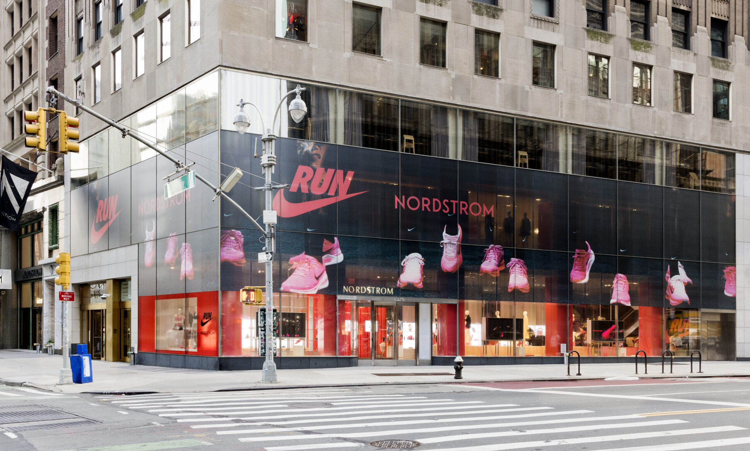 Nordstrom’s New York flagship has turned its prominent Corner space at 57th and Broadway into a limited‑time Nike Running pop‑up. Open until September 2, the shop features Nike’s road‑running lineup alongside women’s apparel, accessories and a customization bar. Backlit signage displays and strong red and white colors support the sporty vibe. The space also hosts weekly group runs, recovery and stretching workshops, ice‑bath sessions and styling appointments.