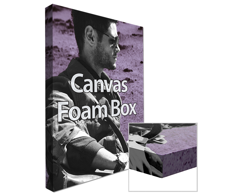 Canvas FoamBox simulates canvas-style dimensional signage with a recyclable cardboard frame, specially designed for retail applications, special events, and point-of-purchase displays. Canvas Foam Box is printed on flat textured corrugated cardboard with scored sides and adhesive liners for fold-able construction. Because it is lightweight and easy to assemble, Canvas Foam is a disposable alternative to professional looking gallery canvas wraps. Not only are they easy to ship and hang, but also completely recyclable when finished. More Images.