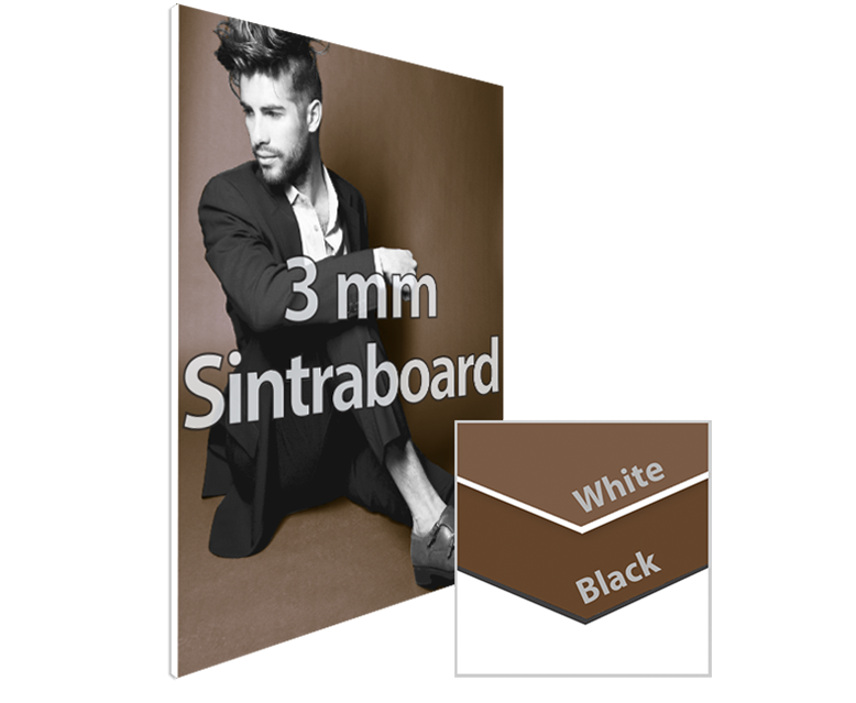 This is a strong 1/8″ plastic material that is also flexible. While it’s thinner than Gatorboard it won’t dent or absorb moisture.