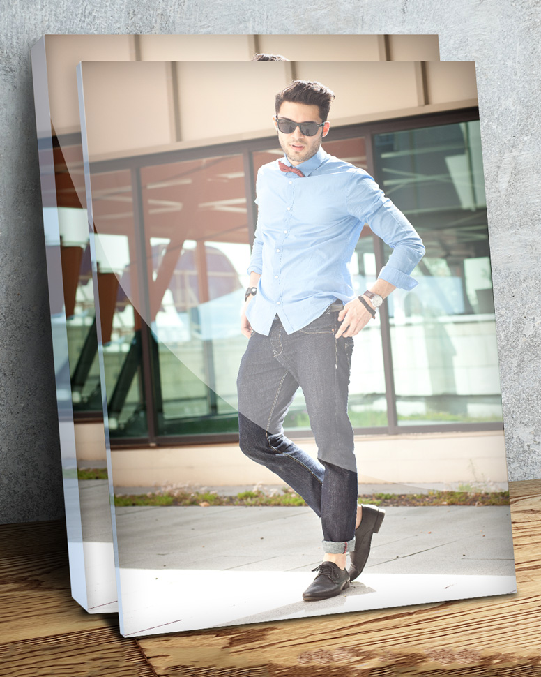 Polished 1/2″ clear acrylic panels that deliver high-end, gallery-style wall art with the option to install using standoff mounts for a floating effect. A recent clear acrylic print example is shown in our Clear Acrylic Print portfolio project.