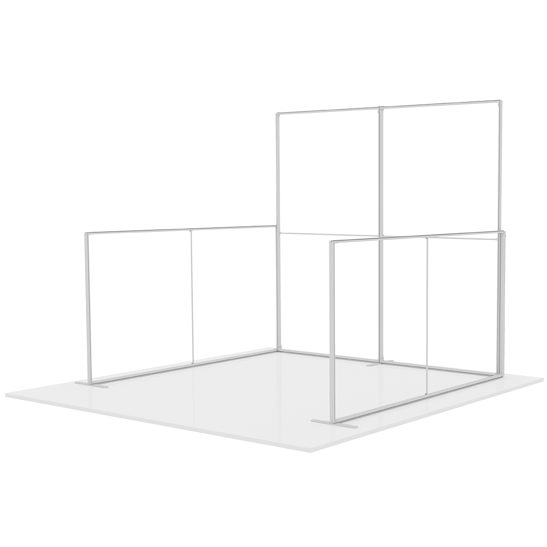Creates a display that measures 8′ in width, 7.5′ in height and 7.5′ in depth. This silver aluminum display is designed for non-lit SEG graphics and can also function as standalone units. No tools are required for fast assembly. Travel bags are included.