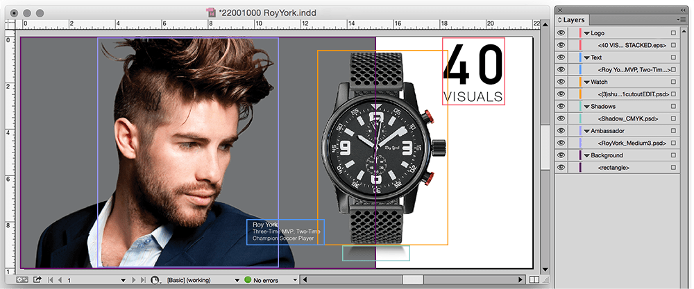 Working files are primarily in: InDesign (.indd) Illustrator (.ai) Photoshop (.psd)